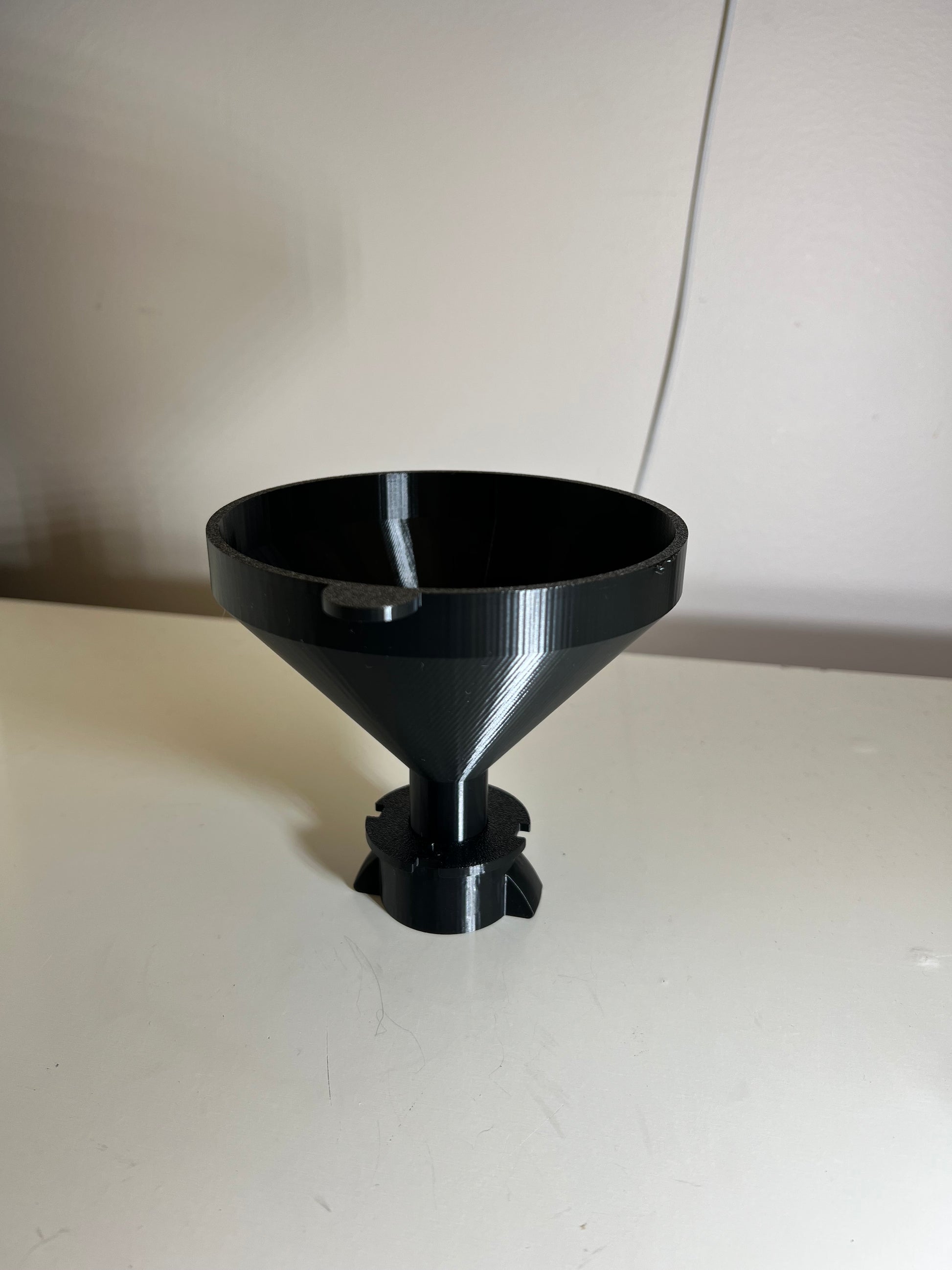 Don’t spill all over your B58 engine! Lock adapter goes in and the funnel lines up in place, vent hole to relieve pressure and allow for quick filling of your engine oil!