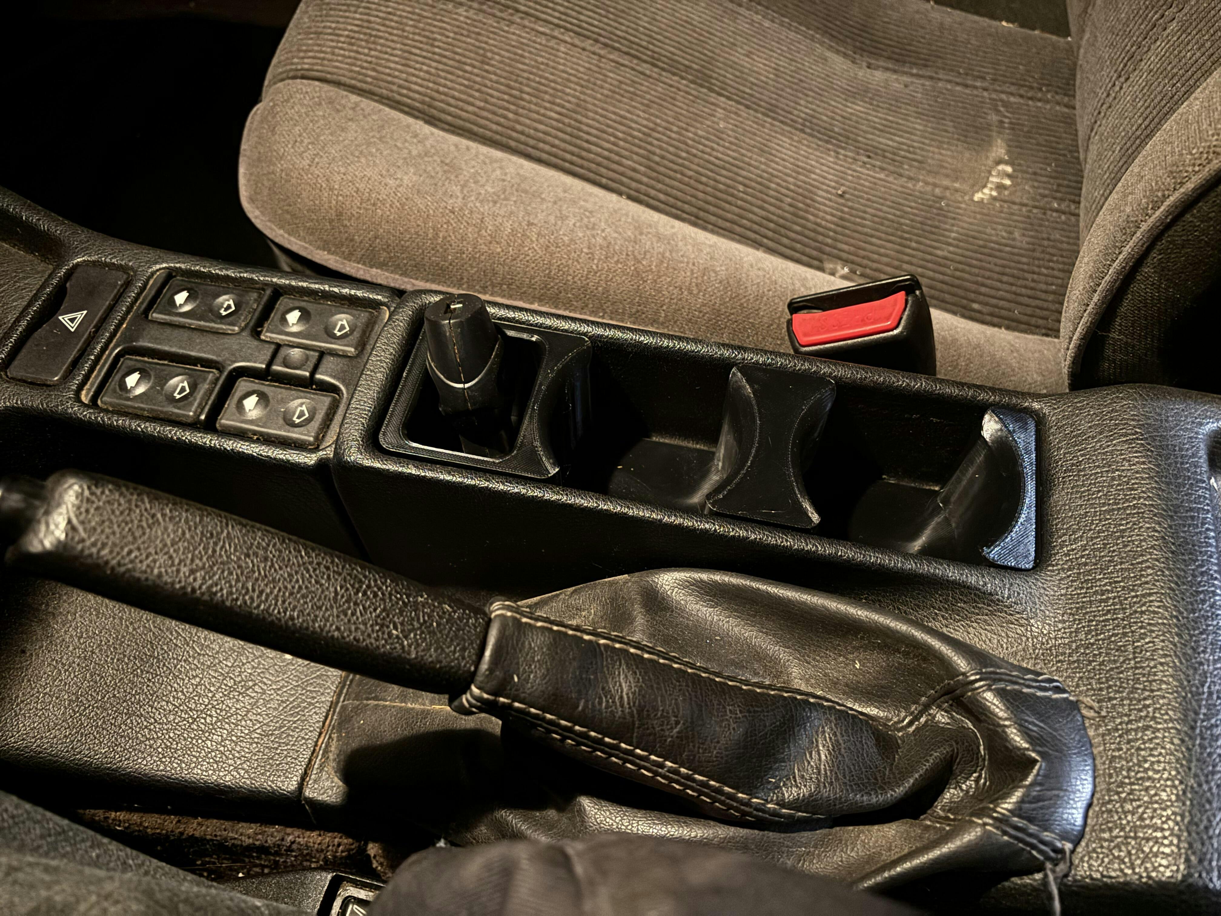 Got no where to put your drinks in your E34? Now you can! With the E34 Cupholder accessory. Allows you to store up to two drinks with a little bin in the rear for loose change!