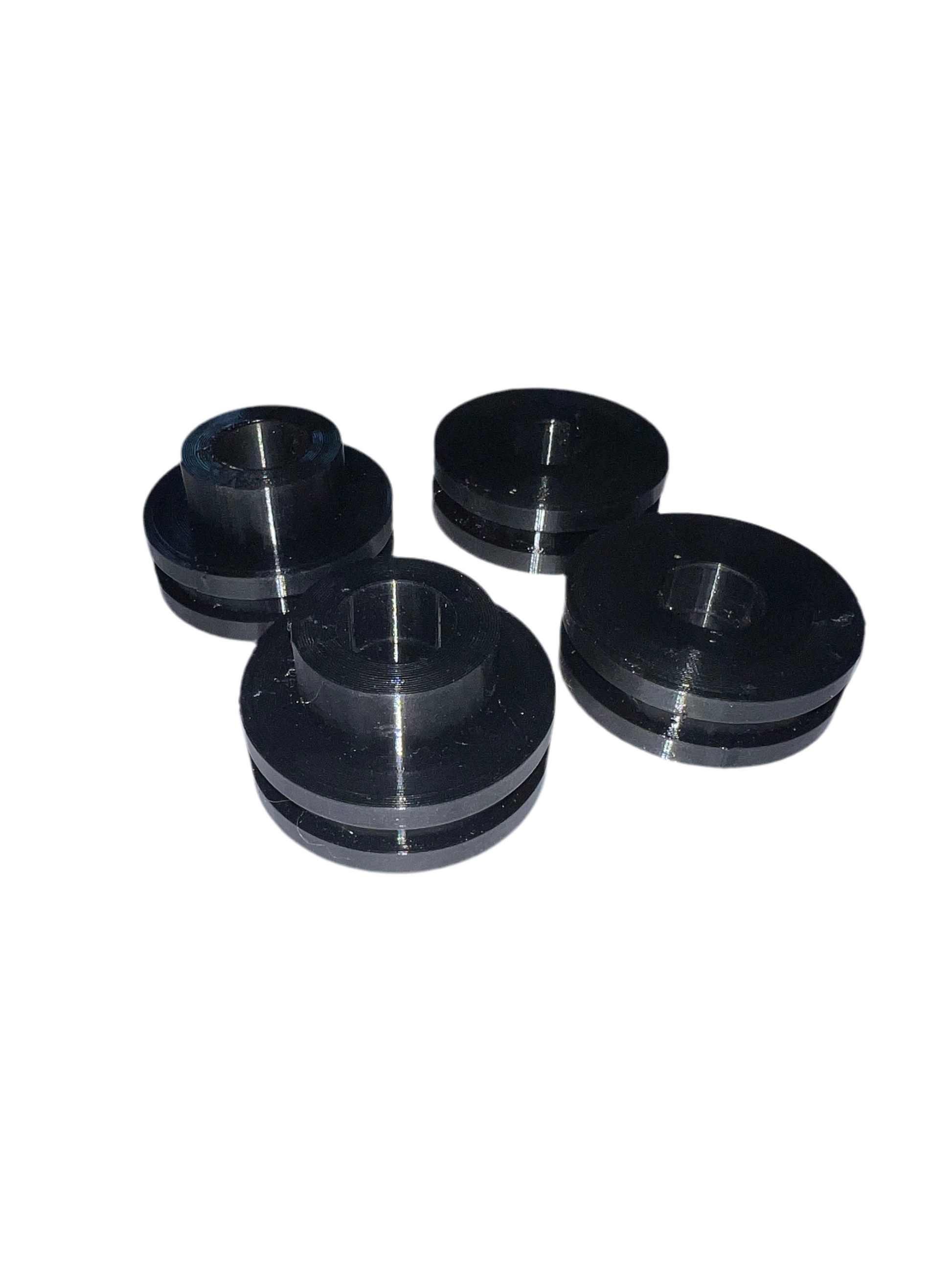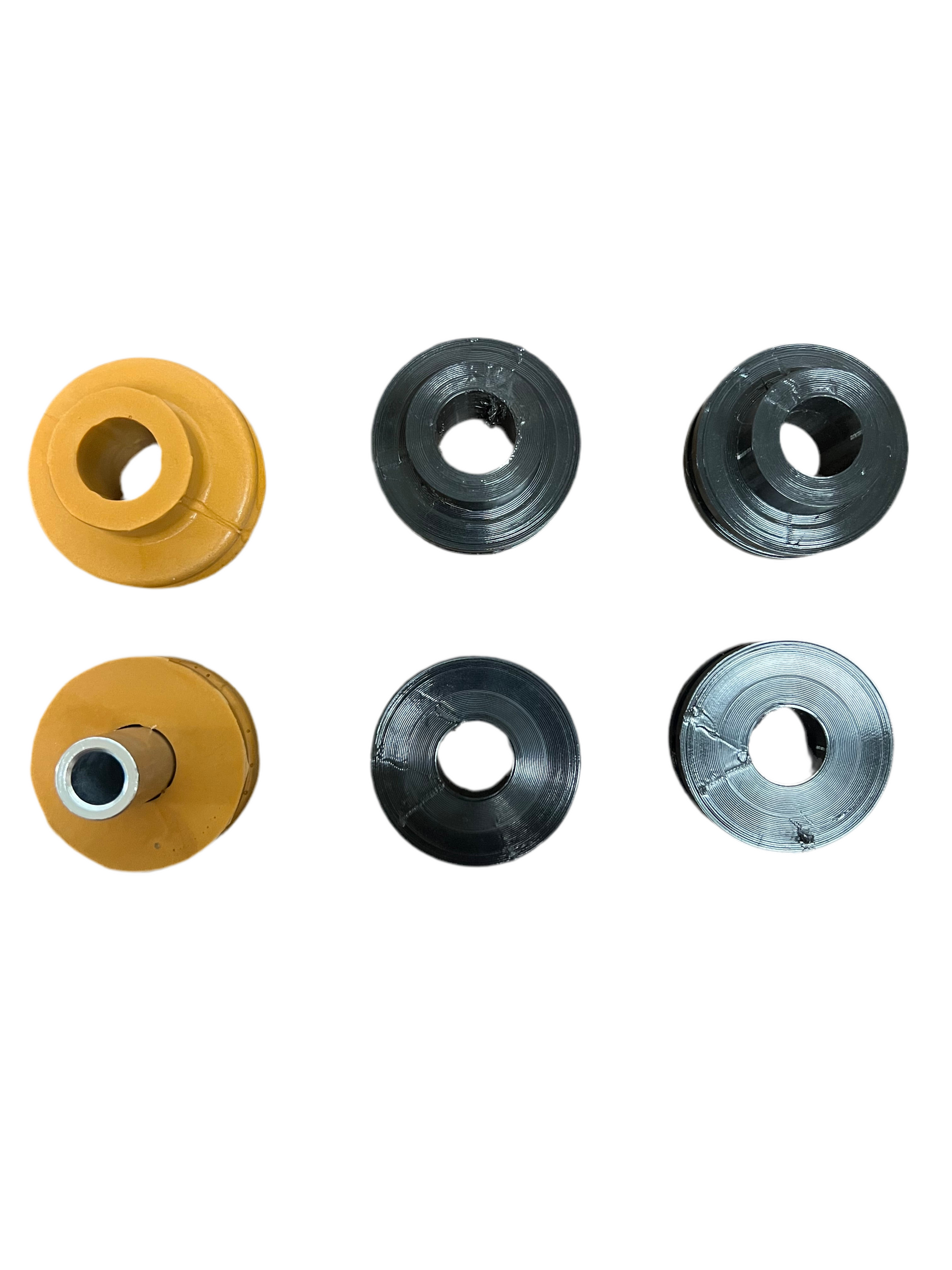 This PrintablesAuto upper shock mount kit provides up to 80% more resistance to load compared to the OE bushings with the option for OE or D-Style design to increase shock travel by 10mm. With the harder rubber, the necked bushing is reduced in size to allow for a deeper travel before the end of the bump stop.