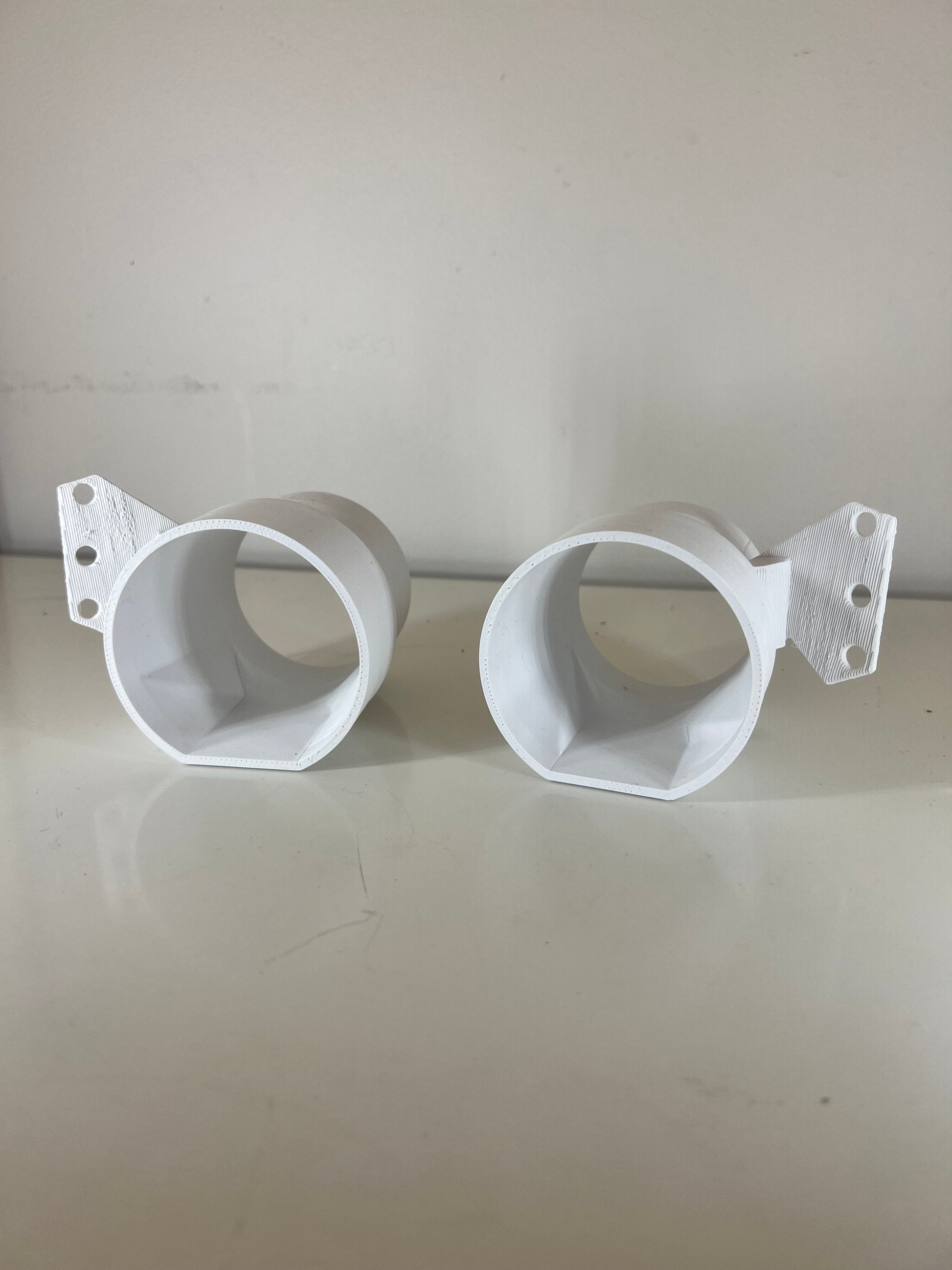 his round fog lamp delete / intake assembly replaces either your driver or passenger side fog lamp assembly for a clean bumper intake for your chassis! With a 2.75 OD base, you can slip on a 3" ID flexible hose to supply your stock airbox or cone filter(s) with high velocity, high pressure air from the lower bumper area. Using your factory mounting location with your factory hardware, no cutting or zip ties required. Transferring of your metal thread tabs from the fog assembly to the intake may be required.