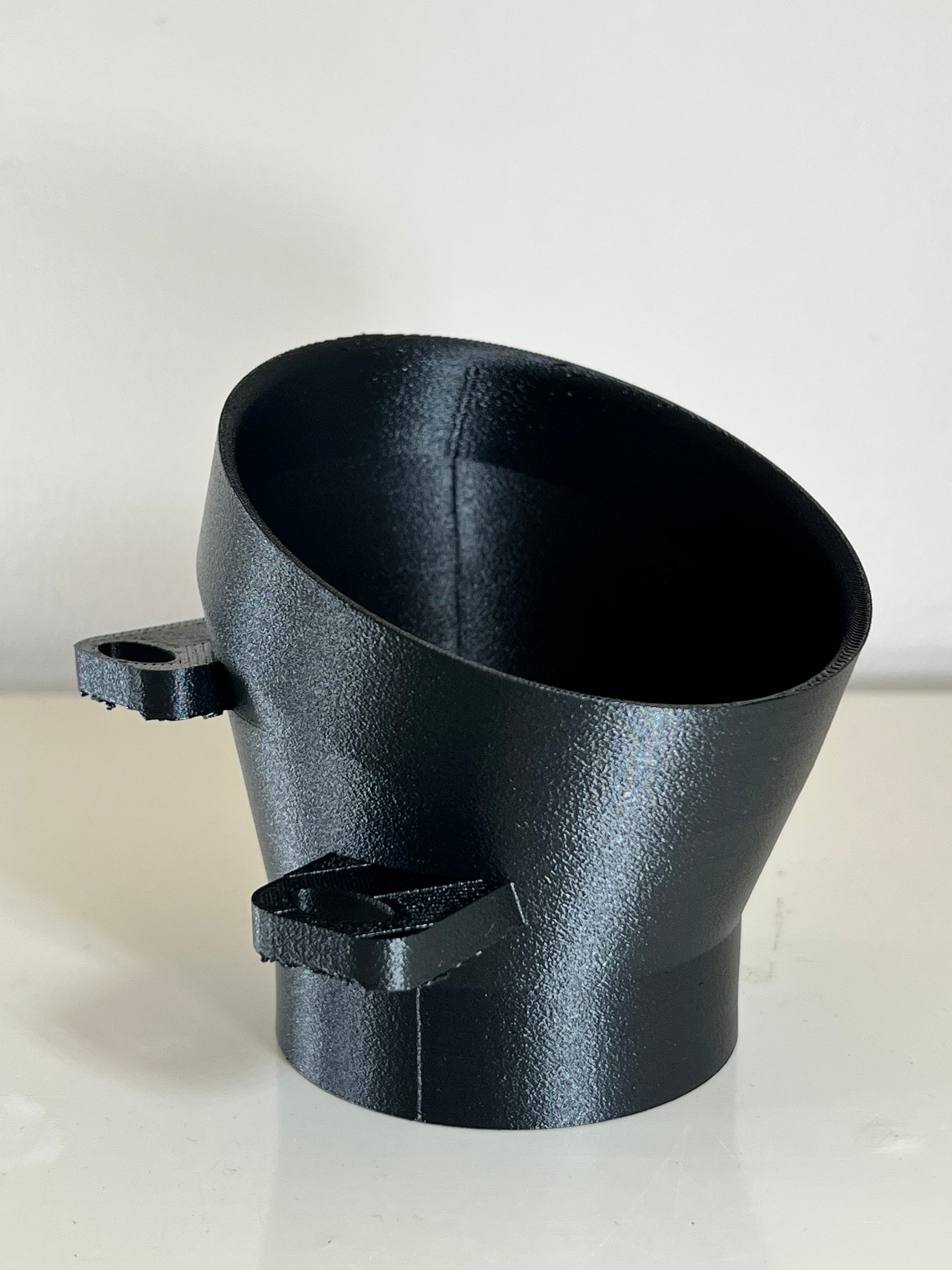 This 3D Model of round fog lamp delete / intake assembly replaces either your driver or passenger side fog lamp assembly for a clean bumper intake for your chassis! With a 2.75 OD base, you can slip on a 3" ID flexible hose to supply your stock airbox or cone filter(s) with high velocity, high pressure air from the lower bumper area. Using your factory mounting location with your factory hardware, no cutting or zip ties required. Transferring of your metal thread tabs from the fog assembly to the intake may be required.