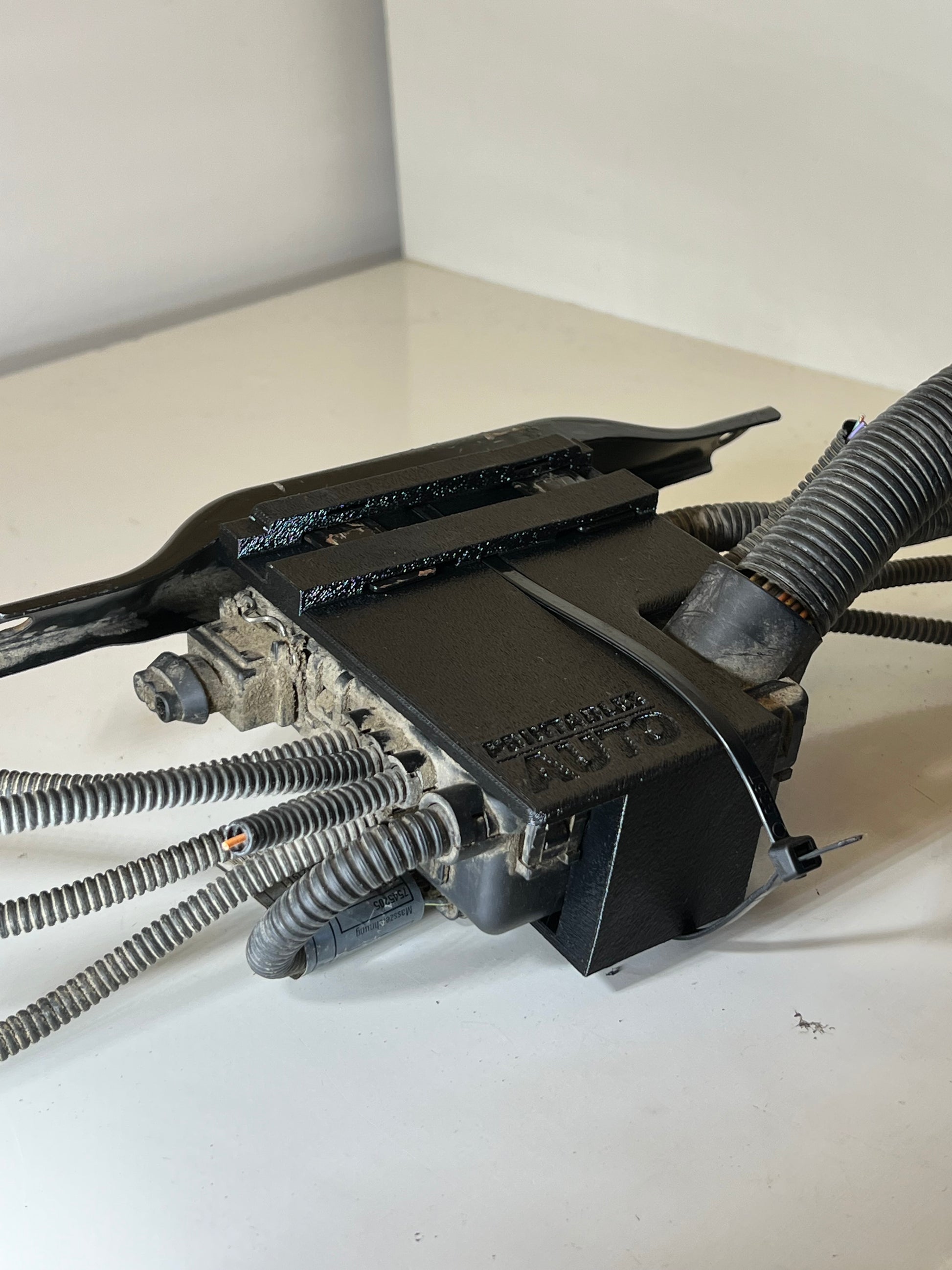 Prevent that hanging wiring harness from dangling around and catching your steering rack or worse, stripping a wire. Our PrintablesAuto solution slips onto your current intake side junction box, gets secured with provided zip tie, and allows you to reinstall your wiring harness bracket to your N51, N52, N54, and N55!