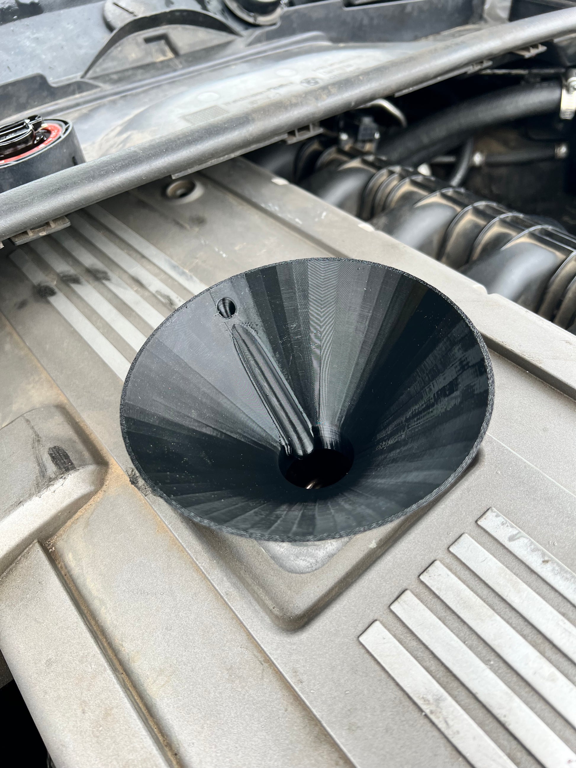 No more spilling onto your valve cover, into those little pockets and steaming off your valve cover. Lock this into the filler neck on the N52, N54, N55, S55 and more and fill with your hearts content as the breather hole will allow for quick filling of your engine, without having to wait for air lock bubbles to come up
